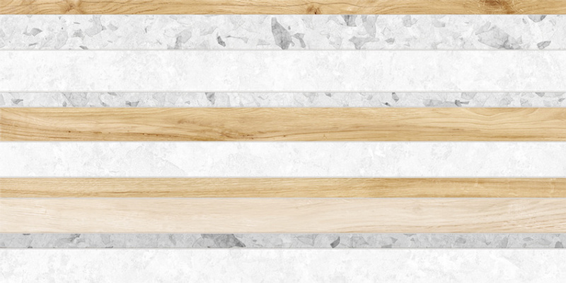 Современная коллекция Play в формате 300×600 мм — это сочетание терраццо, бетона и дерева. Такой микс текстур для тех, кто не боится экспериментировать. Глянцевая поверхность плиток дополнена спецэффектом матовых чернил, которые создают на поверхности сатиновую текстуру и объём. За счет этого бетонно-каменная поверхность получается сложной с интересным сочетанием глянцевой и матовой поверхности. Плитка с текстурой древесины нюдовых оттенков является мягким акцентом коллекции. Декоративный массив полоски из всех видов текстур коллекции поможет правильно распределить акценты в пространстве, не перегружая его. Керамические бордюры 13×600 мм в платиновом и золотом исполнении дополнят интерьер. Комплектуется коллекция лаппатированным керамогранитом 600×600 мм с дизайном дерева и бетона.