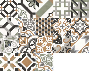 Мода на плитки классического размера актуальна как никогда, ведь основным трендом этого года является сочетание небольших плиток с крупноформатным керамогранитом или альтернативным сочетанием с текстурой древесины. Если раньше пэчворк использовался, как правило, в ретроинтерьерах, то сейчас популярность плиток в этом стиле с каждым годом растет. Дизайн с рисунком пэчворк используется в интерьере ванной комнаты, кухни, прихожей, лоджии, им выделяют и акцентируют пространство, он эффектно смотрится на террасе частного дома, в зоне барбекю или в общественном пространстве. Такой дизайн универсален, так как он гармонично впишется в любой современный интерьер. Также дизайнеры любят небольшой формат плиток, ведь с ним можно использовать цветную затирку и создать уникальное пространство. Поэтому дизайнерами бренда NewTrend была создана коллекция матового керамогранита Design Art в формате 200x200. Она включает в себя 40 артикулов, из них: 9 базовых плиток с текстурой микроцемент, 4 артикула с текстурой мрамора, 23 артикула декоративного массива с узором печворк, которые складываются в единый узор и 4 артикула в виде разнообразных миксов с узорами. Mix 1 и 2 реализованы на базе цвета керамогранита Light grey, Mix 3 и 4 — на базе Ivory. Самостоятельные пэчворки имеют по одной основной базе компаньона, а также несколько акцентных вариантов, которые присутствуют в узоре пэчворка. Для каждого артикула с принтом мы предлагаем варианты сочетаний плиток друг с другом, но вы сами можете создать свою уникальную комбинацию цветов и принтов, ведь эта коллекция создана для интерьерного творчества.